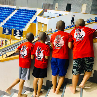 ▲団体形 準優勝/団体組手 優勝のチーム「丸坊主三兄弟」(笑)